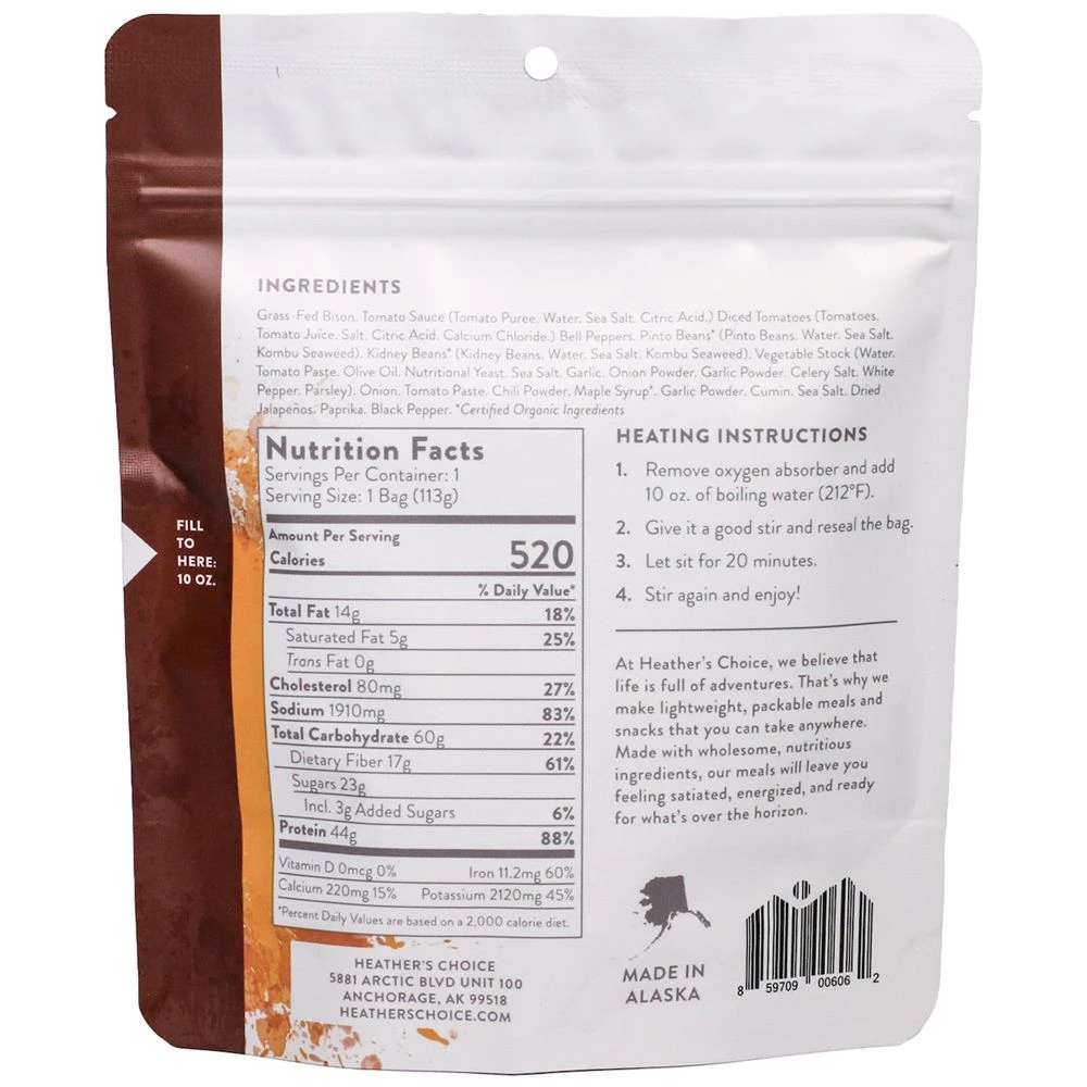 This chili is sure to become your new favorite backpacking meal! It’s loaded with protein, it’s hearty, it’s spicy, it’s everything you could want from a big bowl of chili. Heather’s Choice gave this recipe an update to include pinto beans, kidney beans, bell peppers and jalapeños. Enjoy it at the office when you forgot to pack a lunch, or toss it in your pack to enjoy around the campfire at night.